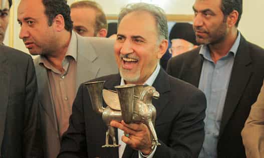 قدری به عکس بالا و به حالت چهره محمد علی نجفی در حالیکه جام سیمین شیر دال را در دست دارد خوب بنگریم. عجبا از «غرور ملی ایرانیان» سرشاری که در ما ایجاد نمیکند!!! گر ذره ای عقل و شعور در سر مانده باشد تشخیص میدهد که این بازیهای «غروری» توسط روحانی و همانند او کاملأ مصنوعی و فقط از برای فریب ملت است. ملتی که عمر ذی قیمتی را از دست داده و میدهد که هیچ جام زرینی در دنیا نمیتواند آنرا جایگزین شود. سیمین باشیم. ** و طبق معمول سنواتی و همچون نطقهای ارباب معظم او القاب «ملت ایران» و «ایرانیان» بعنوان شخص سوم بکار رفته و هرگز و هرگز الفاظ «ما ملت ایران» و یا «ما ایرانیان» و یا «قوم و ملت ما» بکار نرفته٬نمیرود و نخواهد رفت.
