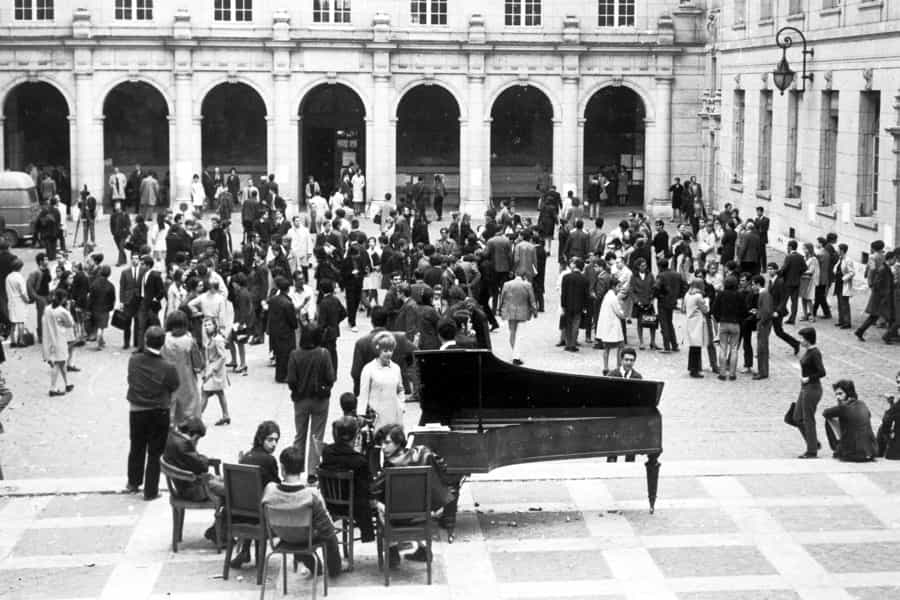 اما گردباد حوادثی که از ۹-۸ سال پیش در تمام دنیا چرخیده بود و هر کجا نظم مستقر دنیا را از جا جنبانده بود، از راه رسید و بساط شادی پاریسیها را به هم ریخت ... و اولین حادثه ماه ی را که میرفت تا همه جنبشهای فکری و فلسفی و سیاسی بعد از جنگ را در خودش متبلور کند، افتتاح کرد!