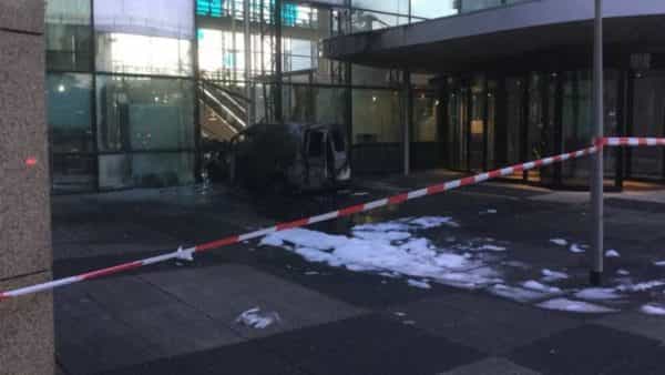 در پی برخورد عامدانه یک وَن، دفتر روزنامه تلگراف در آمستردام آتش گرفت