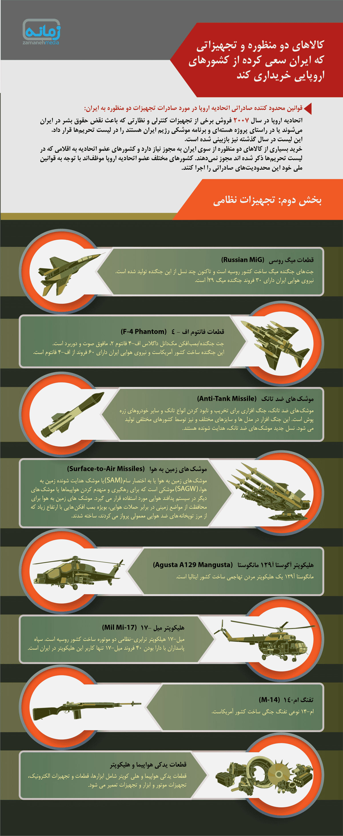 این مقاله از مجموعه پژوهشهای زمانه و سازمان روزنامهنگاری تحقیقی «دَنواچ» (DanWatch) درباره «چگونگی دور زدن تحریم کالاهای دو منظوره و نظامی توسط ایران در خاک اروپا» است. ایران در ۱۳ سال گذشته تحت تحریم تسلیحاتی سازمان ملل قرار داشت و همزمان از سال ۲۰۰۷ از سوی اتحادیه اروپا برای خرید تجهیزات نظامی و دومنظوره با محدودیتهایی مواجه است. با وجود این، ایران توانسته از برخی کشورهای اروپایی و آمریکا سلاح و تجهیزات دو منظوره تهیه کند.