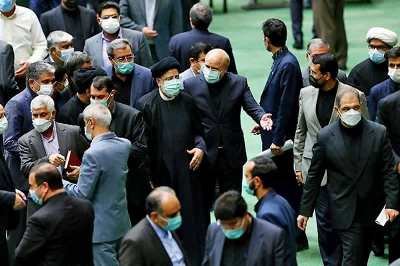 ابراهیم رئیسی (عضو هیئت مرگ) در کنار محمدباقر قالیباف، رئیس مجلس شورای اسلامی در جلسه بررسی صلاحیت وزیران پیشنهادی برای دولت سیزدهم ـ عکس از محمد حسنزاده ـ خبرگزاری تسنیم