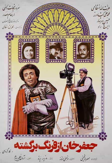 فیلم کمدی-درام «جعفرخان از فرنگ برگشته» به کارگردانی و نویسندگی علی حاتمی، محصول ۱۳۶۶، اقتباسی از نمایشنامه «جعفرخان از فرنگ آمده» نوشته حسن مقدم است که در اواخر دوره قاجار نوشته شده، اما داستان فیلم در اواخر دوره پهلوی روایت میشود. حاتمی در این بازآفرینی، جای شخصیتهای مثبت و منفی را تغییر داده است؛ برخلاف نمایشنامه که جعفرخان را فردی تحصیلکرده و مبادی آداب و خانوادهاش را ناآگاه و خرافاتی نشان میدهد، در فیلم، جعفرخان شخصیتی غربزده، بیعاطفه و خیالاتی است که خود را «پروفسور فضا» و ناجی بشریت میداند، در حالی که خانواده و اطرافیانش، افرادی ریشهدار و دانا هستند که تلاش میکنند او را هدایت کنند، اما ناکام میمانند. سکانس مصاحبه جعفرخان با جراید، با دیالوگ درخشان «ای گله یخزده در سرما» و اجرای حسین سرشار، از بهیادماندنیترین لحظات سینمای ایران است. بخشی از فیلم در روستای کبوترآباد اصفهان با همکاری جهاد کشاورزی ضبط شده است.