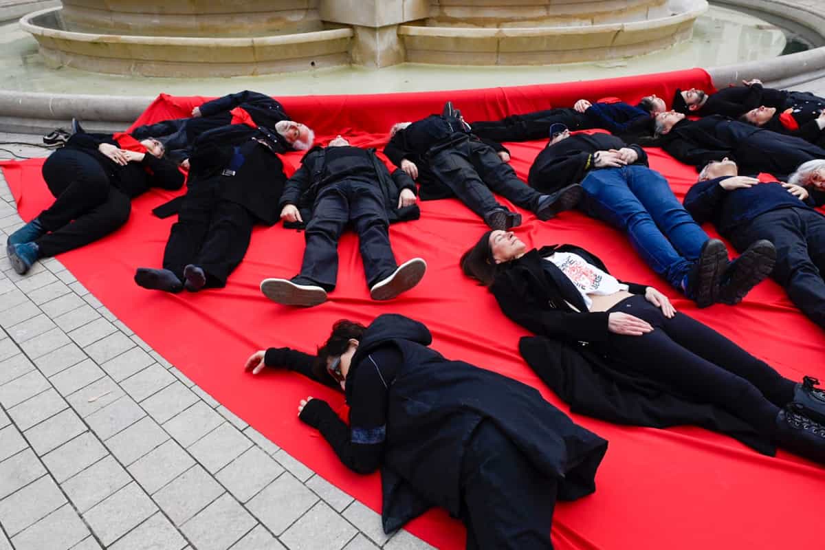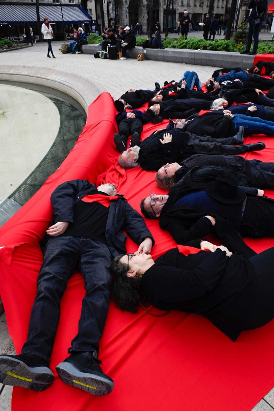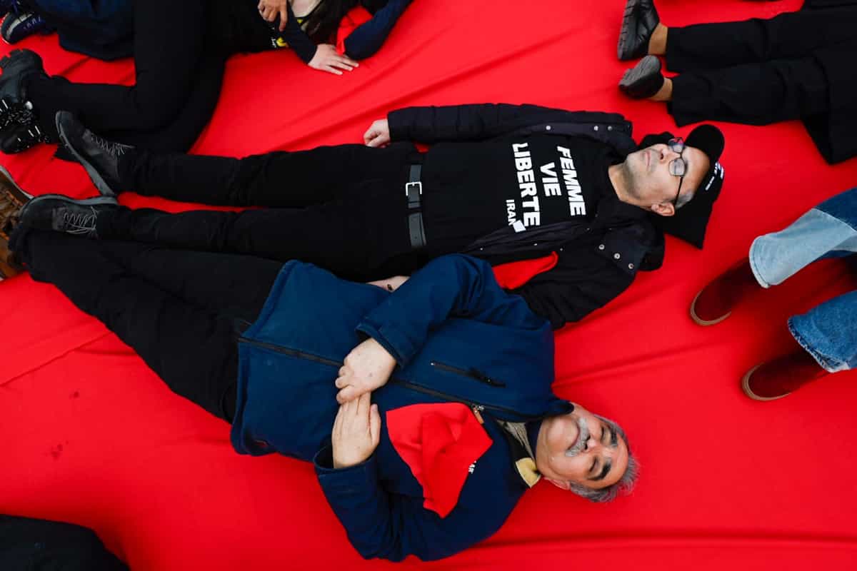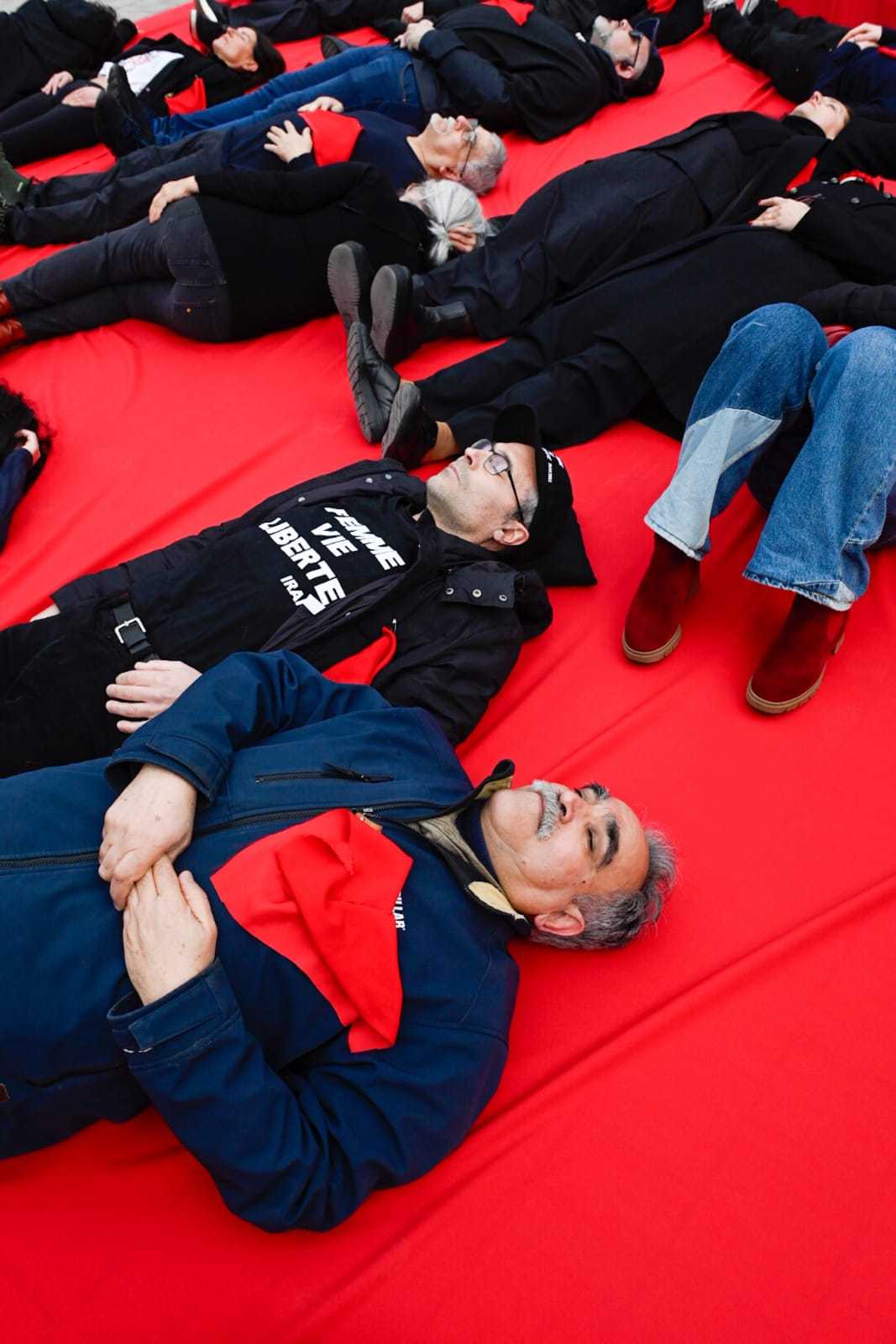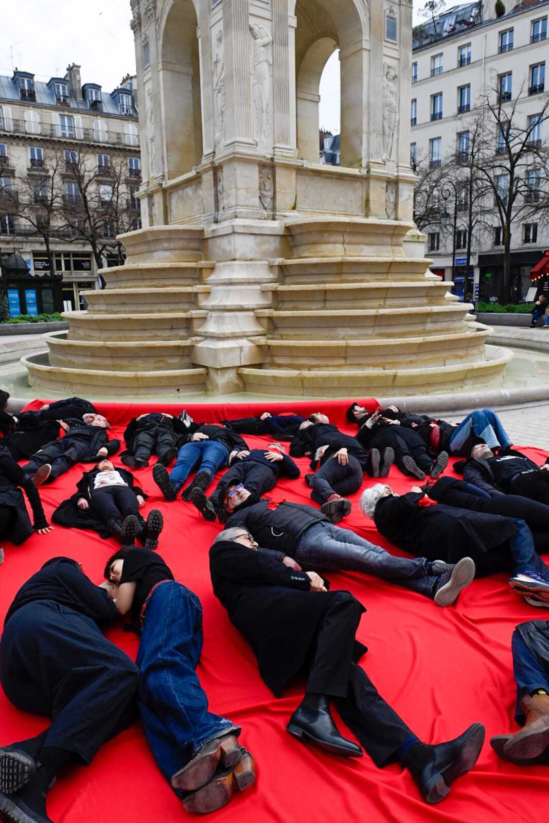 پرفورمنس اعتراضی در پاریس: قربانیان جنبش آزادیخواهی ایران را فراموش نمیکنیم