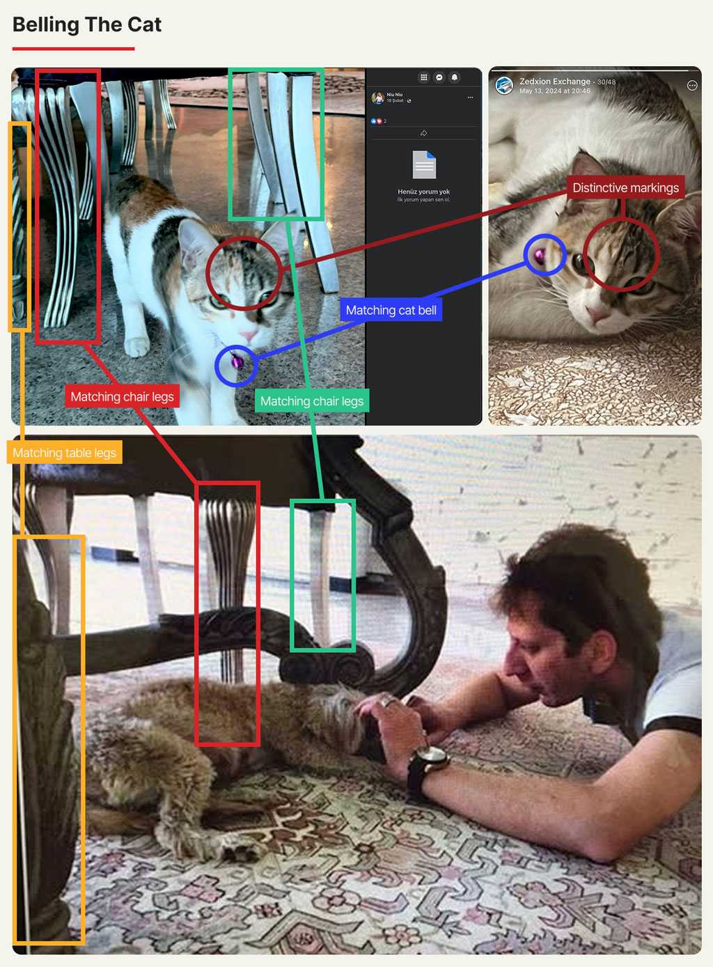 گربه در آن عکس زیر میز و صندلیهایی با پایههای متمایز نشسته است. در تصویر دیگری که در یک صفحه طرفداران اینستاگرامی زنجانی منتشر شده، بابک در کنار همان میز و صندلیها در حال بازی با یک سگ دیده میشود.