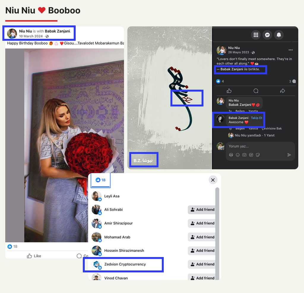 «بانی» سال ۲۰۲۲ در حساب فیسبوکی خود نوشت: «بهترین حس این است که کسی که دوستش داری، او هم تو را دوست داشته باشد. خوشحالم که عاشق تو هستم و محبوبِ توام. B.Z من.» دو سال بعد (در سال ۲۰۲۴) نیز نوشت: «تولدت مبارک بوبو (Booboo).»